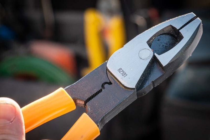 The Long Nose Solid-Joint Pliers also feature Gearwrench’s cross-hatch design, but they also come with a fastener grip area to turn nuts and fasteners. They also feature a nail/wire holder on the jaws themselves.