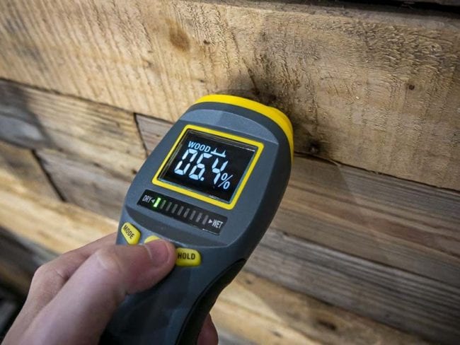 Start by setting the meter to either the โWOODโ or โBLDGโ, push the pins up to the material youโre testing. From there, you can move the meter around to see how the moisture content changes. Itโs like playing โhot or coldโ to trace down the source of the moisture.