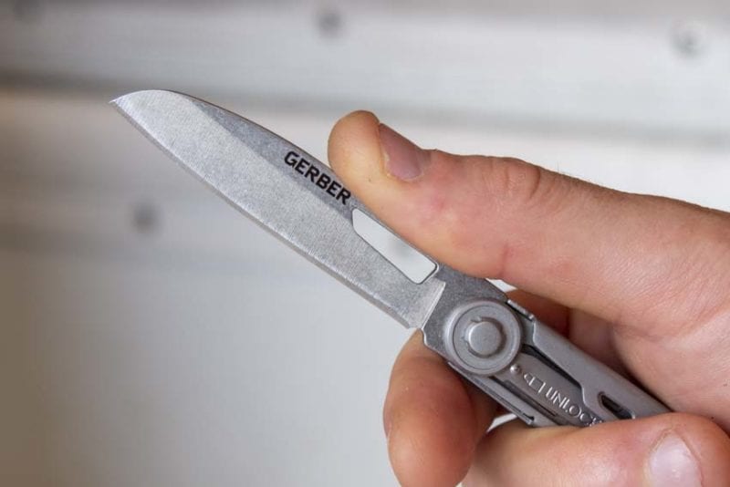 All of the tools on the Gerber Armbar Drive are listed as stainless steel. I haven’t been able to find an exact specification for the blade steel, but it’s acting similarly to the 420HC you find on the Gerber Center Drive. You can sharpen it easily, which is great for any knife you might carry in the field. It doesn’t hold its edge as long as other steels, though.