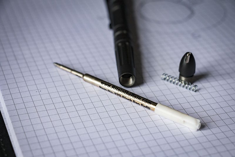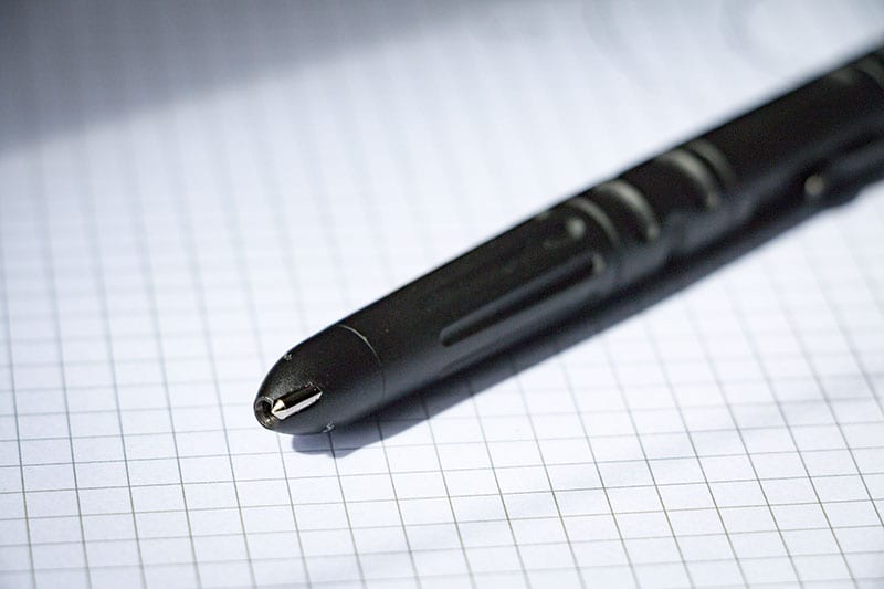 Iโm a big fan of the clickable design of this pen. It means I can pull it out of my pants pocket or sleeve pocket on my jacket and get writing with one hand. Itโs the clickable design that also changes the game in a couple of ways compared to the other tactical pens in my arsenal.