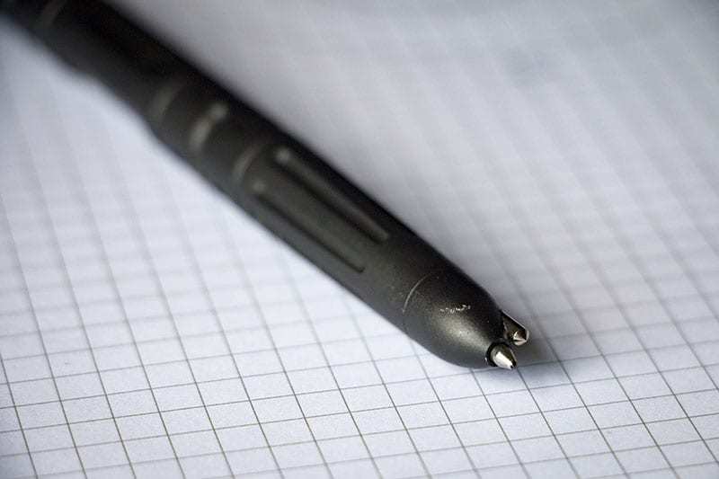 The Gerber Impromptu Tactical Pen has the look, feel, and function of a defensive tool and quality writing instrument wrapped into one design. The downside of potentially getting an extra look from a TSA agent when flying is easily overcome by the positive writing qualities and immediate defensive characteristics of this pen. Itโs also a Made in the USA product covered by a lifetime warranty.