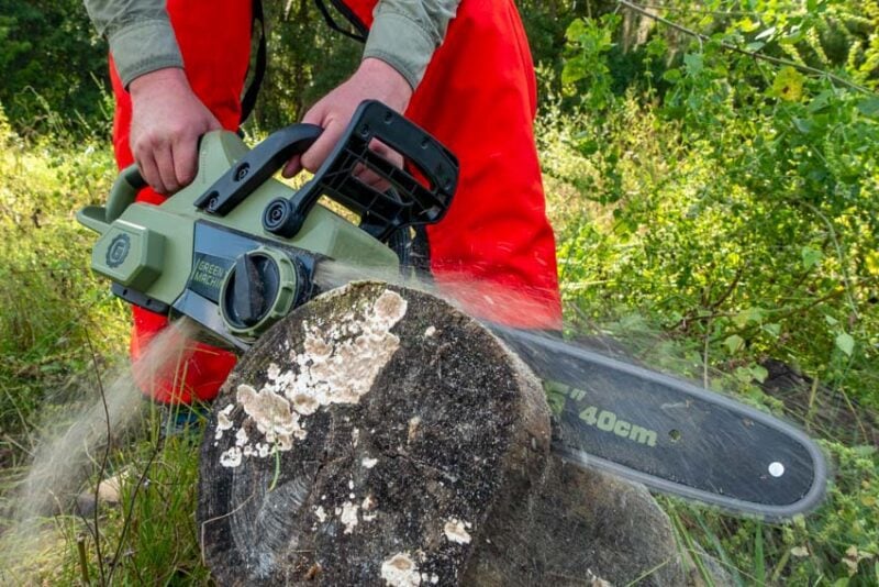 This chainsaw has a very responsive trigger and reaches its top speed very quickly. Itโs a capable saw, melting through thick logs with relative ease. It doesnโt have as much torque as some of the top-performing chainsaws weโve tested, so you may need to cut a little slower. However, if you let the motor keep the chain speed up, itโs up for the storm cleanup and seasonal maintenance of just about any species.