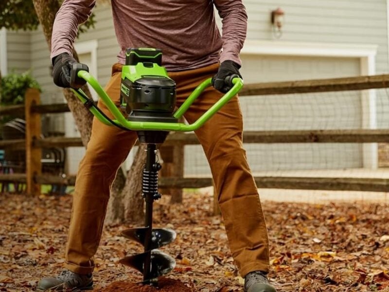 The Greenworks 60V earth auger certainly has the kind of torque we see from high-end Pro models, so it has the power to get the job done quickly. It doesn’t require much maintenance, doesn’t put out fumes, and is significantly quieter. Plus, it’s far easier than using a manual post-hole digger.