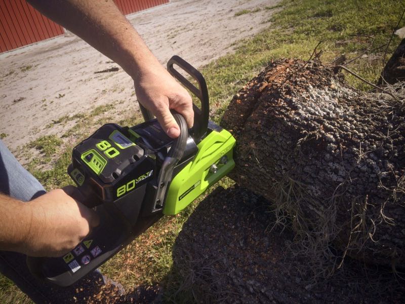 Using the GreenWorks 80V Pro Chainsaw in the Field
