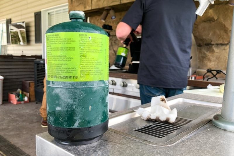 Hereโ€™s the deal though: itโ€™s time to get a little technical. The propane in the 1-lb bottle expands so fast coming out at such a high velocity, that it cools down the canister (bottle) and causes it to lose pressure, thereby reducing the velocity of fuel flow. Around 2 minutes into the burn, you will see a noticeable fall off in pressure and the bottle will be freezing cold. As soon as you quit letting gas out, and take the bottle back inside the house, the bottle will slowly warm back up to the ambient temperature and youโ€™re off and running again for another 2 minute burn. So if you need prolonged burns with the GrillGun, swap out propane bottles allowing the used cans to warm up and be usable again.
