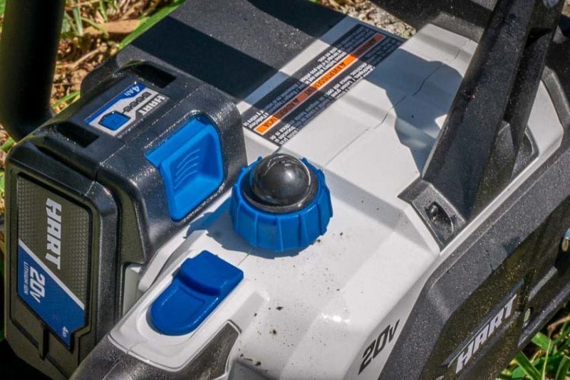 A push-button oiler lets you control the flow of oil to the bar and chain, keeping everything lubed up and running smoothly. You will have to remember to actually press the button once in a while though, as opposed to an auto-oiling system. We donโt mind that and it keeps down the mess.