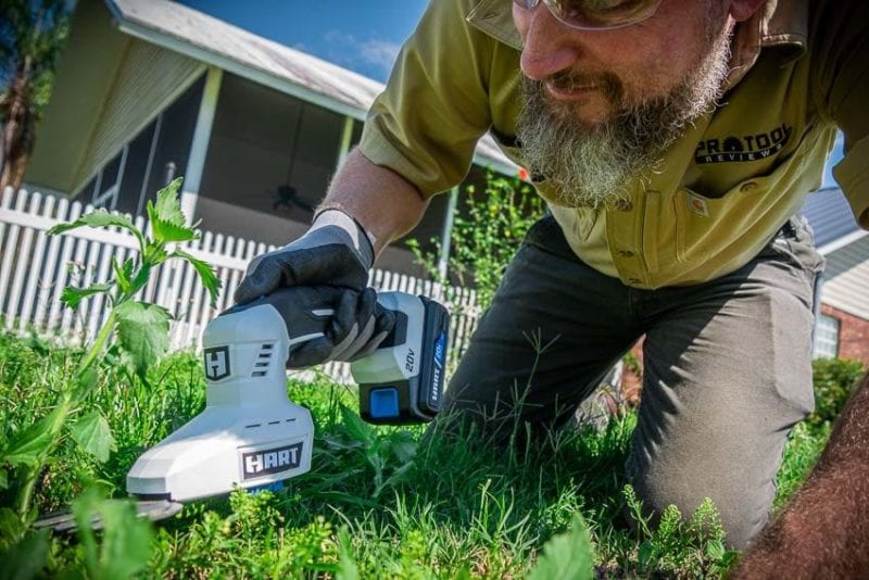 The main selling points of the Hart 20V Shear and Shrubber revolves around its precision and its ease of use. As far as precision goes, the shear provides a slower, more methodical approach to trimming the grass close to your flower beds while still offering a more convenient alternative to hacking at your lawn with some scissors or a pair of clippers.