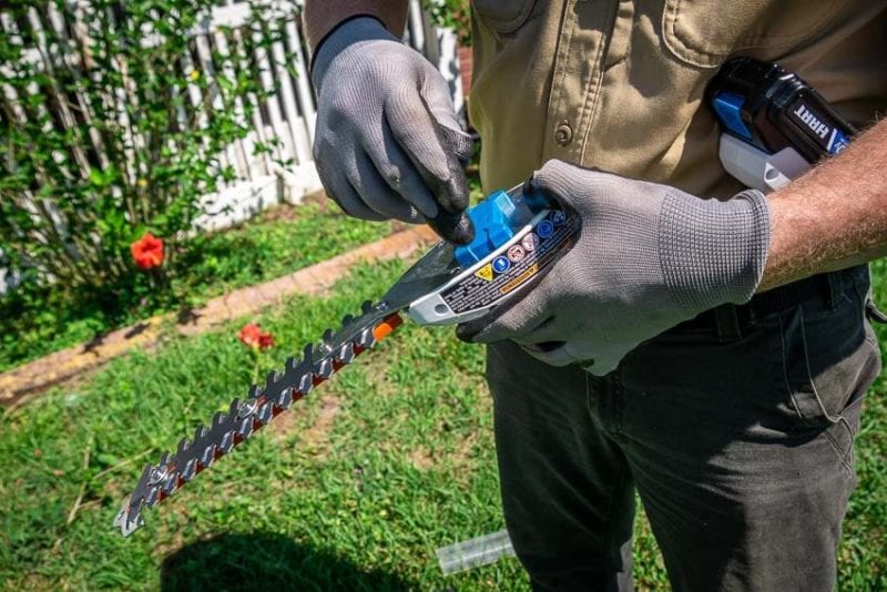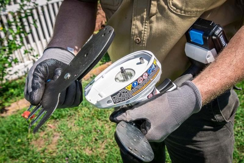 Switching between the two attachments is simple. The Hart 20V Shear and Shrubber offers tool-less attachment changes. Simply unscrew the nut and replace the attachment, lining up the hole in the attachment with the post on the trimmer base. The whole transition feels pretty idiot-proof.