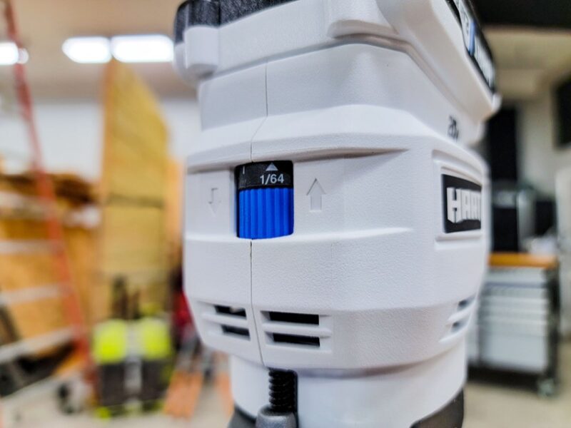 The HART 20V compact trim router is the first of its kind for the company. It has a brushed motor and just one speed settingโ€”29,000 RPM. While this is a little lower speed than some of the more premium models, it has plenty of power to handle most routing tasks in low to medium-density woods.