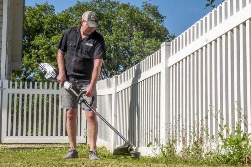 The bare weight of the trimmer is 8.8 pounds and a 4.0Ah battery brings the total package up to 11.1 pounds. While thatโ€™s not the lightest weโ€™ve seen, it is a very reasonable weight for the performance level weโ€™re seeing and you can shave a bit more off by using a lower-capacity battery.