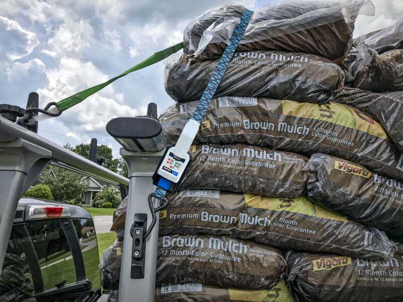 The HART Tools ratchet straps are made from reinforced polyester webbing. As a result, they donโ€™t weigh much and have a good amount of strength for general use when hauling furniture, mulch, or other items in a truck bed or trailer. They coated powder-coated the S-hooks to make them less likely to scratch the sides of vehicles or more delicate items.