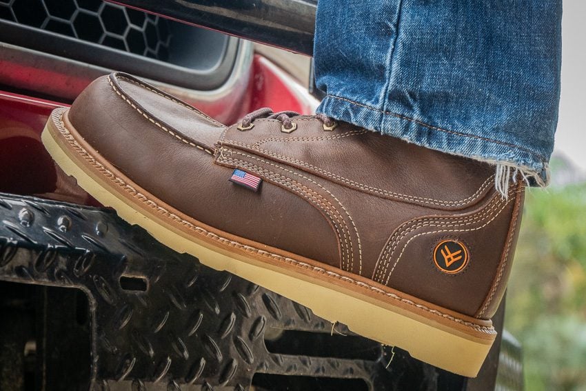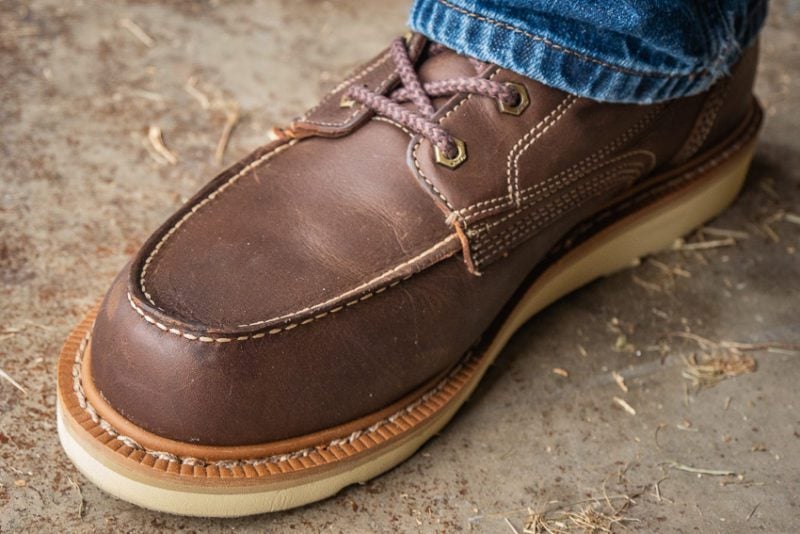 From a style standpoint, these boots start life as traditional 6-inch work boots and add a moc toe around the top of the toe box that gives them a distinct look.