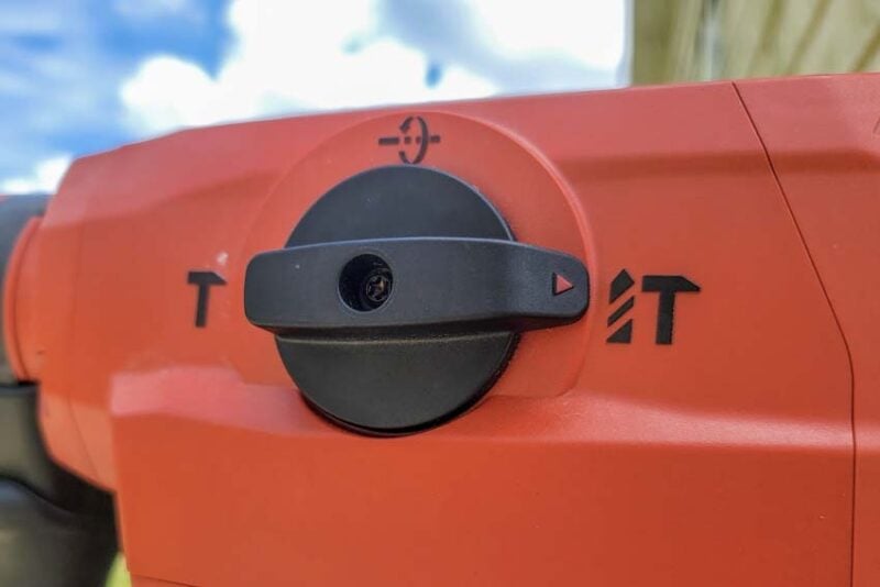 The Hilti TE 60-22 retains the 2-mode selection dial from its predecessor letting you quickly alternate between the hammer drill mode and chipping mode. Simply turn the dial located on the left side of the tool body to your desired setting and youโre off to the races.