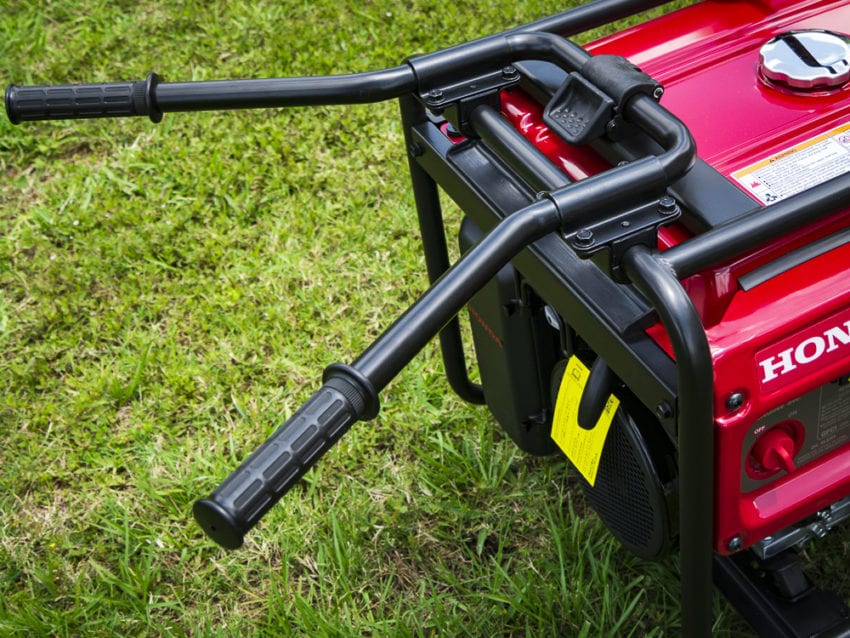 The handles, when folded away, snug up neatly to the frame. When extended, they lock into place securely without any janky wiggling. Additionally, the wheels feel sturdy enough to support the weight of the generator over uneven terrain.