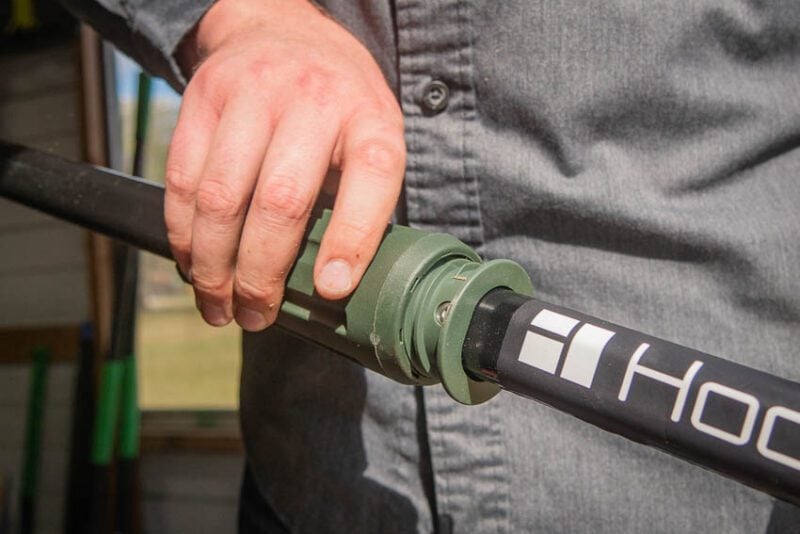 The Hooyman 40V pole sawโs aluminum shaft breaks down into three independent pieces for easy storage. Threaded couplers securely hold the extensions together and add a bit of rigidity. We really like this design because of its robust feel even though thereโs a risk of misplacing a section, unlike with telescoping pole saws. However, the kit includes a zippered storage bag to hold all parts and accessories when youโre not using it.