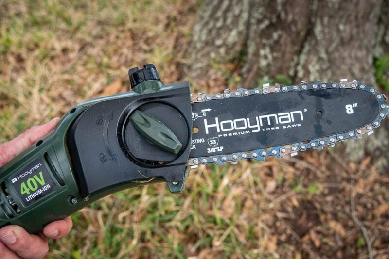 Like weโve seen with other pole saws in the past, Hooymanโs utilizes an angled head design which gives you a more aggressive angle of attack during cuts. This vertical cut angle results in a safer and more predictable drop when cutting limbs overhead.