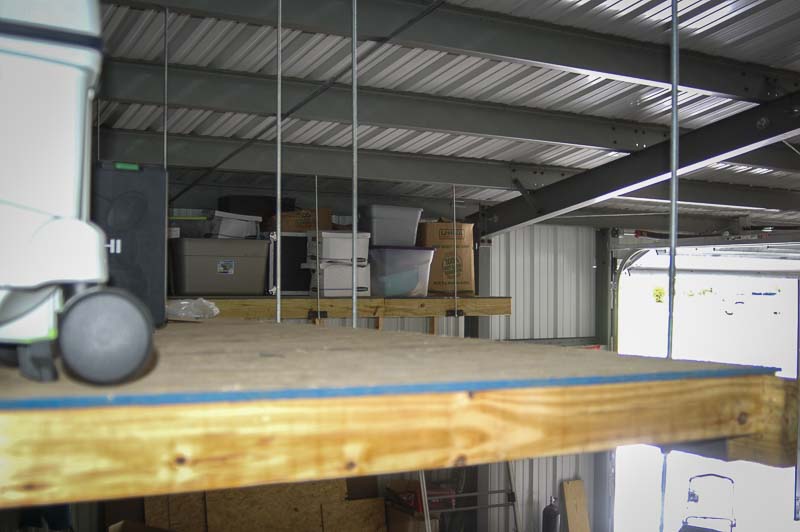 What do you do when you have an all-steel building, including steel rafters, purlins, and girders, but you need more storage?ย Yes, I know, you take a trip to the localย Loweโs home improvementย store.ย But how do you most efficiently clear out space? Sure, we could go with industrial shelves on the floor, or we could build shelving from standard lumber.ย Those solutions still were not cutting it. There had to be something better.