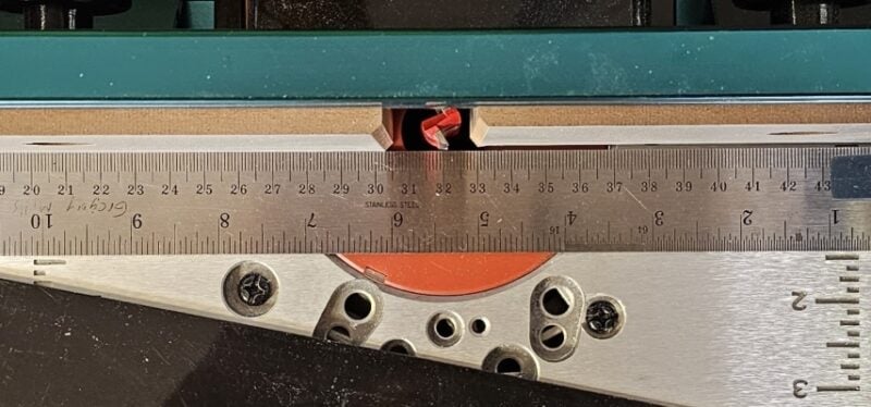Another common feature with these is a starting pin that screws into the table and makes it safer as you plunge the stock into the spinning bit when you are not using a fence. Many of these table inserts have scales etched into them to help align the fence. Some even come with a miter gauge and grooves in the table for it, and even a fence.
