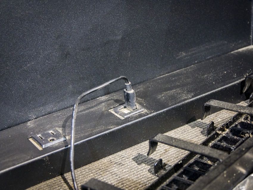 - Integrated power strip with USB ports (top chest only)