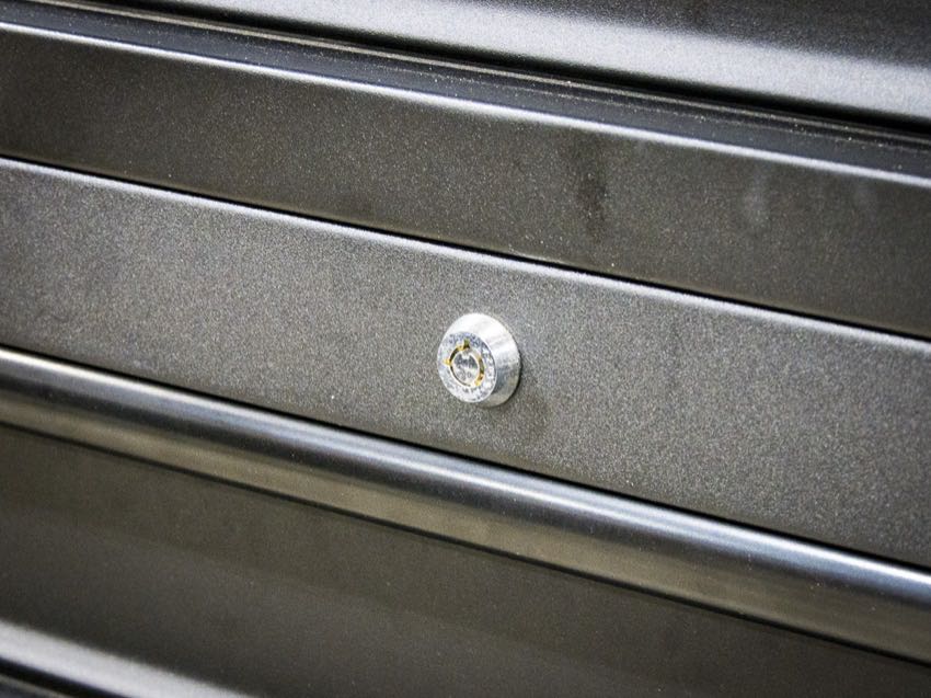 Both the tool chest and tool cabinet portions of the Husky 56-Inch Tool Cabinet can be locked.