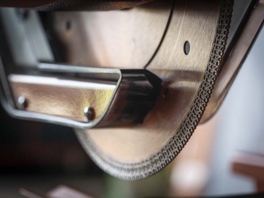 Thatโs not to say that everything gets collectedโwe did have some small flakes of glazing tossed about from time to time. It just wasnโt enough to be problematic. Keep the blade guard as low to the table as possible for the best results.