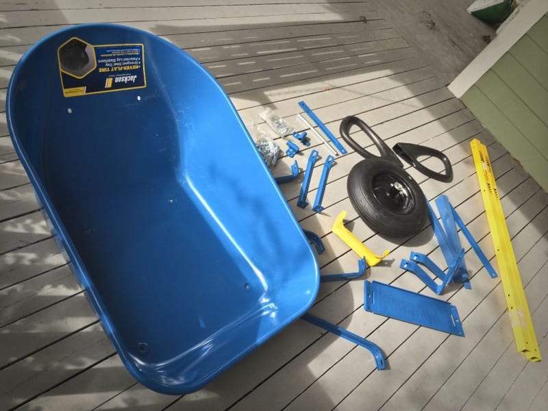 There is actually a lot to say about the features of the Jackson Total Control Wheelbarrow. First of all, you have to assemble the entire unit yourself. It comes in a box, and you’ll have little difficulty if you’re good at Erector sets. If you don’t enjoy putting things together, however, it’s best to have a lackey, er…assistant, help you out. I found the instructions to be well-prepared, and I had the entire wheelbarrow assembled and ready in less than 20 minutes. I’m sure I could shave some time off that, but I was poring over the components and checking out what made everything tick as I went along.
