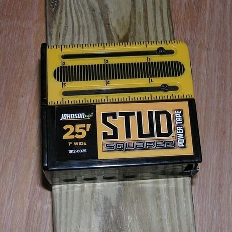The Johnson Levelย 1812-0025ย Stud-Squared is the love-child offspring between a tapeย measure and a square. The general idea is that you can use the tapeย to both measure and mark a straight line on dimensional lumber withย relative ease. No more making your mark and then looking for a squareย or straight edge to complete the perpendicular cutting line. Withoutย even having to extend the marking ruler, you can scribe across aย regular 2ร4 since it shares the same width.