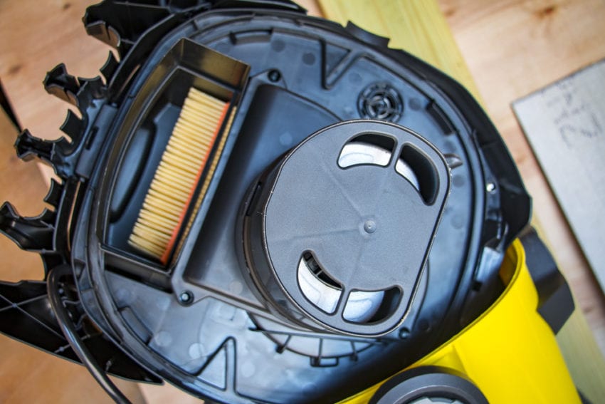 - Air Filtration:ย While not an uncommon feature in the world of shop vacuums, the Karcher WD5 Wet/Dry Vacuum refines the old standard. This model features Karcherโs patented filter removal technology, whichย allows the filter to slide out of its housing for easy removal. Because of its placement, which remains separate from the canister, users can change the filter without coming into contact with the vacuumed debris. This filter can be used in both wet and dry applications.