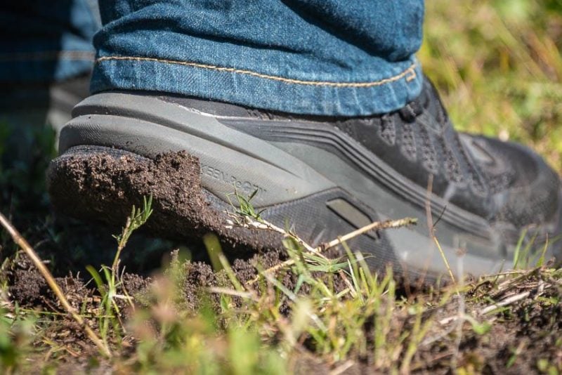 The boot has a wedge design outsole that disperses your weight out over a wider area and helps with the comfort level. Its tread pattern is somewhat aggressive and similar to a hiking boot while offering the oil and slip-resistant qualities work boots require.