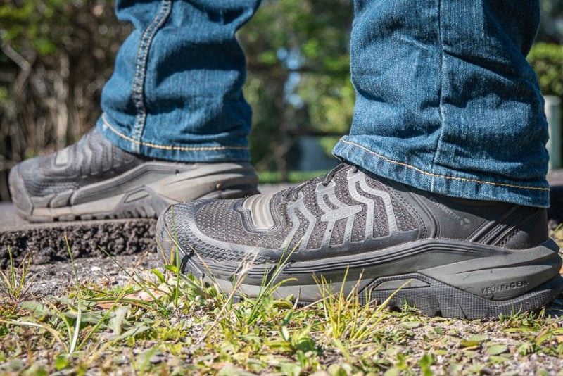 Keen strays from a traditional leather upper with the Kansas Cityโ€™s design. Instead, they go with a synthetic mesh material. Itโ€™s highly breathable and hiding underneath is a breathable waterproof membrane.