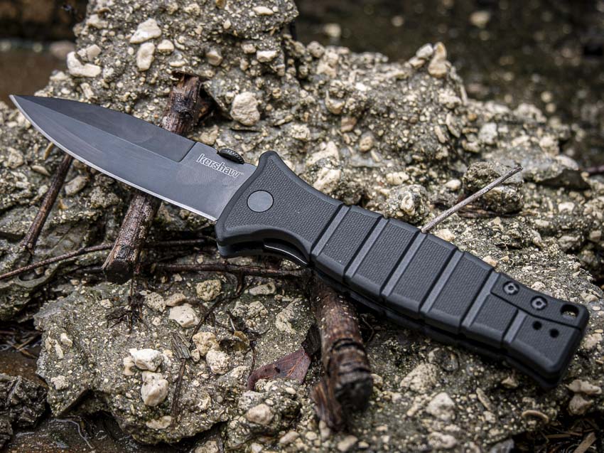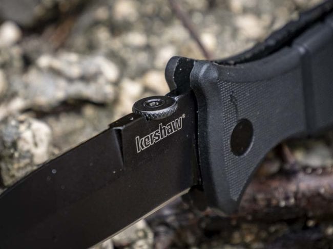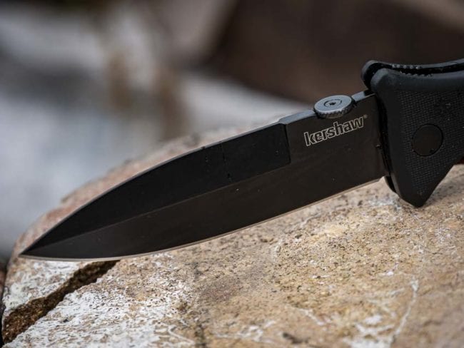 The blade is made from Kershaw’s standard 8Cr13MoV blade steel and gets a black oxide coating. It’s easy to sharpen with reasonable corrosion resistance and decent edge retention. If you’re used to any of the “super steels”, it wears down more quickly. When you’re trying to keep the cost down, this is an excellent balance of edge performance and price.