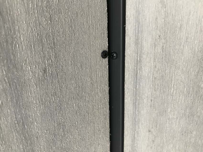 The panels are held to the bottom plate with a similar screw method. The bottom screws, however, seem to grab the panels a bit more securely and penetrate higher up on the panel.