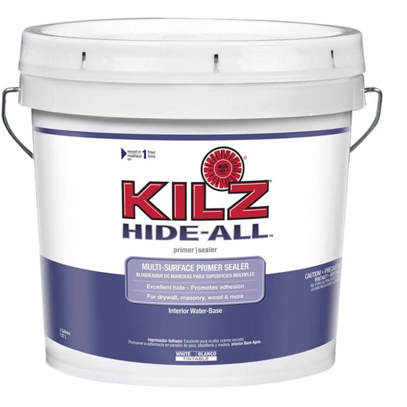 As a sealant, Hide-All offers an even covering over porous surfaces to help eliminate permeability. As a primer, its latex makeup offers high-hiding and fast-drying characteristics. The new Kilz primer creates a consistent painting canvas by covering up issues that stem from non-bleeding stains and dark colors. Users can topcoat with any latex or oil-based paint one hour after application.