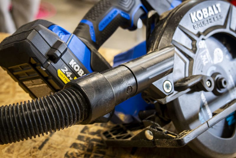 Cutting through pressure-treated 2ร—10 and stacked 3/4-inch OSB subfloor, the KXCS 124 Bโ€™s performance wasnโ€™t disappointing in the slightest. In particular, Kobalt does an excellent job removing dust and chips from the blade area.