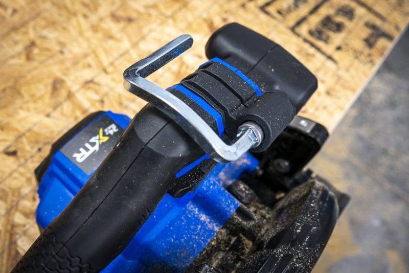As I mentioned above, we like the ergonomics of the inline handle design on the Kobalt 24V Max XTR circular saw.