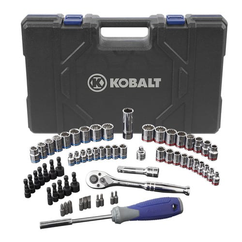 Withย the recent reintroduction of the Kobalt mechanics tools, we have beenย eager to put our hands on a set to see what they are all about. Theย Kobalt 63 Piece Mechanics Tool Set (0338513) that we got in includesย some of the most common 1/4โณ and 3/8โณ drive Metric and SAEย sizes sockets that you will need. Things like a 72-tooth ratchet and fully polished chrome plating on all the tools come standard, along with laser etching and red/blue colored markings for easy identification of SAE (standard) and MM (metric) sizes. With anย ever-growing line of mechanics tools, it looks like Kobalt Tools is notย just about quality, but also variety.