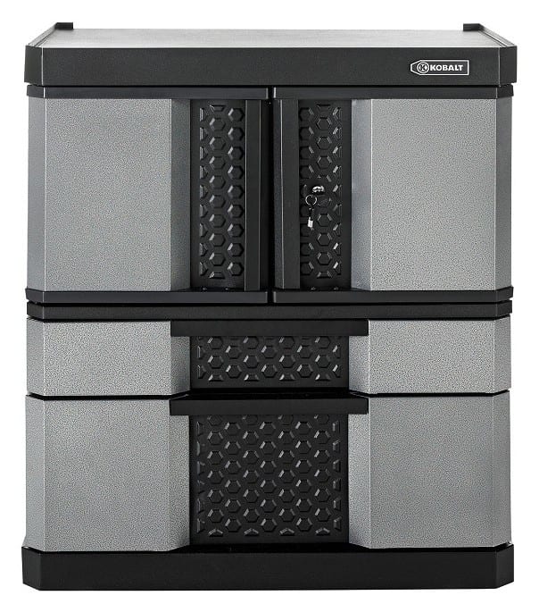 The new Metal Multipurpose Cabinets are part of a larger garage storage system that includes a suite of cabinets, hanging racks and K-rails that let you store, hang, or mount nearly anything you can imagineโin just about any configuration. Thereโs tons of room insideโplenty, in fact, to store your Kobalt 4-Tool 20V Li-ion Cordless Combo Kit.