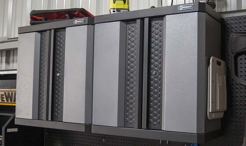 Iโve seen just about everythingย โ repurposed kitchen cabinets are popular following a kitchen remodel. Homemade plywood cabinets are a fun DIY project for the beginner. Plastic and resin options are available, but just donโt seem as durable as what weโre looking for. Enter stage right the Kobalt Steel Wall-Mount Garage Cabinet.