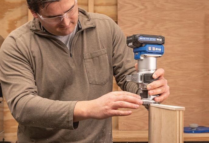 Another woodworking-specific tool in Kregโ€™s 20V lineup is this 1/4-inch trim router. Like the rest of this cordless lineup, it features a brushless motor, this time driving speeds up to 30,000 RPM. There are 6 speed settings to choose from (10,000 RPM โ€“ 30,000 RPM) to set your removal rate to the application at hand.