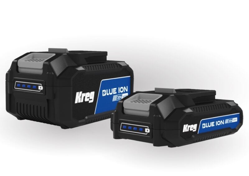 For Kregโ€™s first stab at power tools, it all starts with the battery. These tools are powered by the new Kreg Blue Ion 20V batteries. Theyโ€™re outfitted with optimized electronics that communicate with the toolsโ€™ brushless motors for enhanced runtimes and high performance.