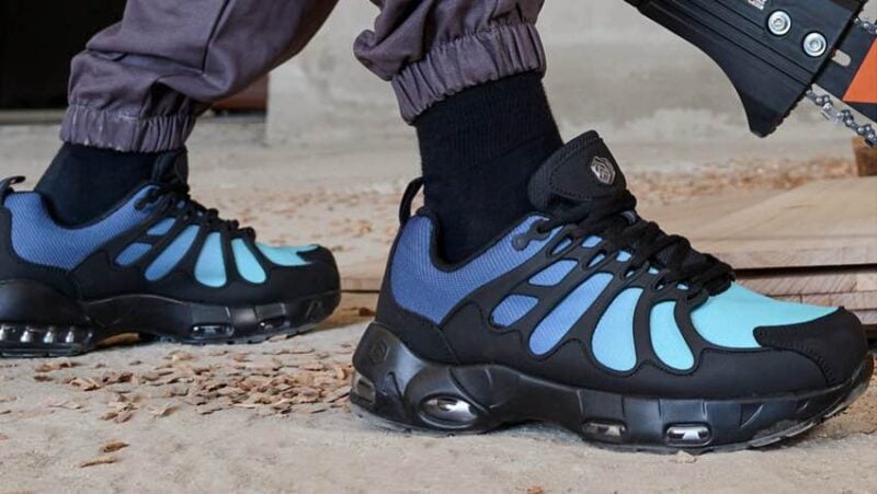 The Larnmern Infinity Pro has a much more athletic look than many of the work shoes weโve seen. It features a steel toe cap and a mesh upper with a distinctive TPU material design for breathability and a little extra style. Inside the heel, youโll find highly elastic EVA foam that provides much-needed cushioning and support. On the midsole, they incorporated more glossy TPU material for arch support during those long days on your feet.