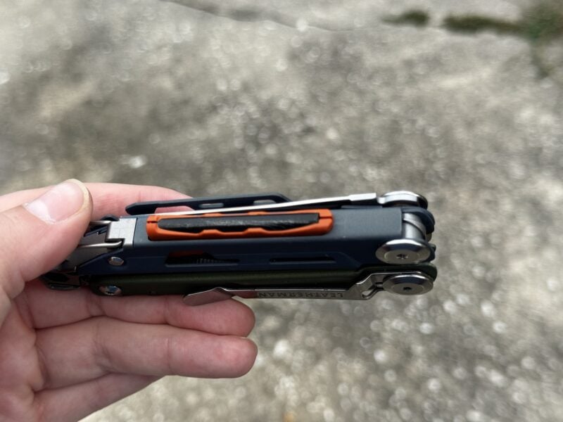 Not to be left out are two of the most popular Leatherman integrated tools โ€“ the knife and saw. The knife is a partially serrated 440HC (high carbon) clip point blade that can be opened with one hand. While one-handed opening is a nice feature and works, itโ€™s not quite as smooth as youโ€™d expect from a standalone folding knife with a smooth bearing system.