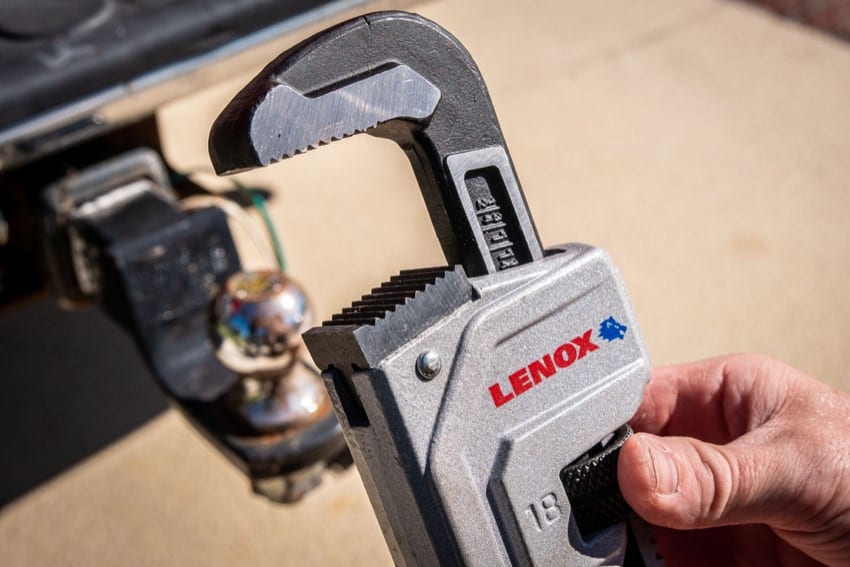 These LENOX wrenches feature an aluminum handle. Contrasted against the typical cast iron pipe wrench, these aluminum wrenches drop some weight. We found them pretty comfortable to use. While it’s probably fair to say that there really isn’t much difference in ergonomics between this and your standard pipe wrench apart from the reduced weight—that weight makes a difference on a tool this size.