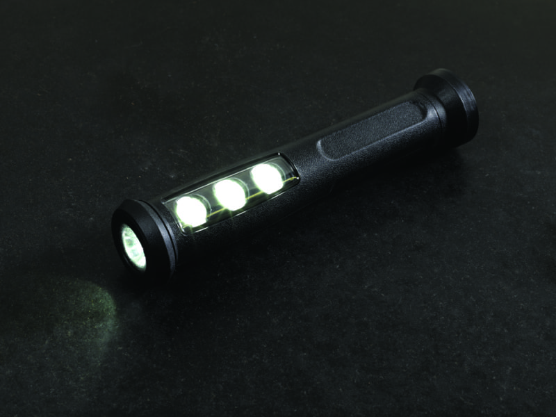 The Mac Tools Worklight features a polycarbonate casing with TPEย (thermoplastic elastomer) textured coating finish. This outer coating isย a sort of rubberized coating that gives the flashlight a good grip and protection from falls. Of course, while thatโ€™s impressive, Macย Tools also made the new LED Work Light water resistant โ€“ the switch isย 100% sealed from water, dirt, and dust. Of course, allย of this is backed up with an IP54 rating.