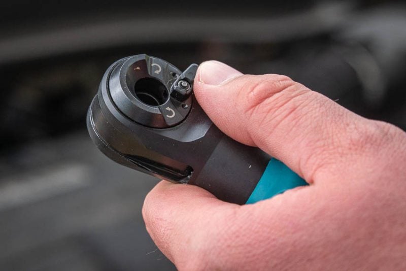 Thereโs a forward/reverse switch at the top to select the direction youโre working very similar to where it is on your hand ratchets.