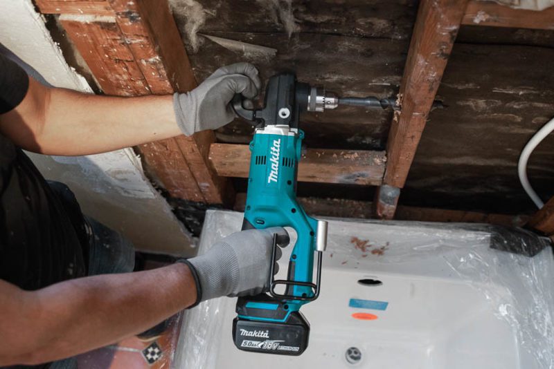 The Makita XAD05 and XAD06 18V Brushless Right Angle Drills have the sorts of features and performance that gear them toward electrical, utility, and plumbing Pros. They come in two flavors โ one with a 1/2โณ chuck and the other with a 7/16โณ hex chuck. Both can drill up to 5โณ holes with hole saws and 2-9/16โณ holes using self-feed bits.