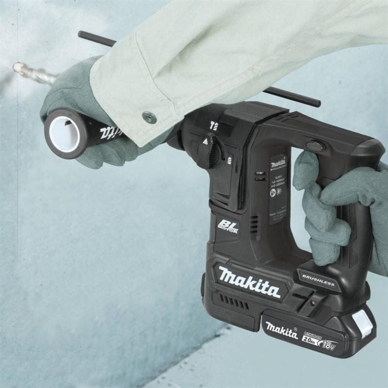 The Makita 18V LXT Sub-Compact Rotary Hammer houses a Makita BL Brushless Motor, providing up to 50% longer run-time, increased power and speed, and longer tool life than brushed motors. It features 2-mode operation for โrotation onlyโ or โhammering with rotationโ settings. You lose the chiseling mode with this model. A variable speed trigger allows the rotary hammer to operate at 0-680 RPM and 0-4,800 BPM. For impact energy, the new Makita produces .88ft. lbs/1.2 Joules for light-duty applications.
