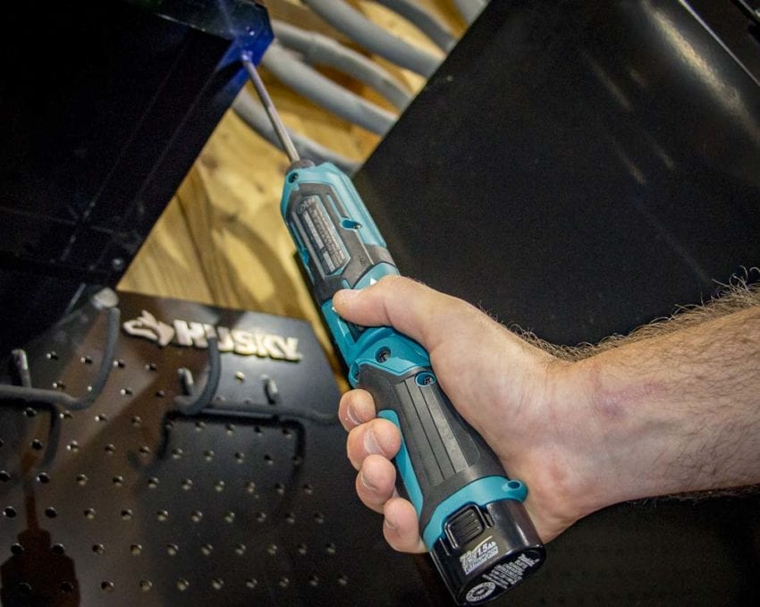 I have a project underway that partly involves the disassembly of a tool. Itโs a combination of tough tool plastic and solid metal internal components. As Iโm working with it, Iโm in awkward positions tight against the tool and around the housing. The Makita 7.2V impact driver is perfect for this application. Its weight and grip design allow me to work comfortably and access everything I need. I can feather the driver on the screws that are attaching plastic and work with more impact muscle on the metal-to-metal connections.