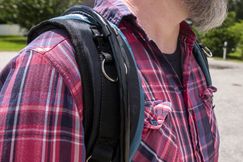 Another feature weโd like to see is a chest strap coming across the front. Thereโs a clip near the top of the shoulder straps, but itโs behind your neck while youโre wearing the backpack.
