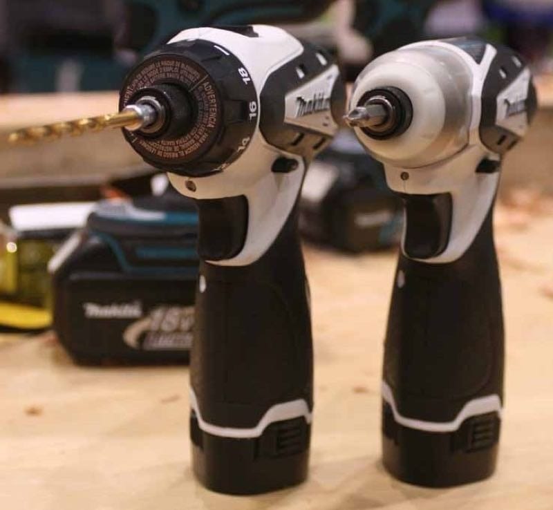 Each of the tools in the Makita LCT203W 10.8-volt combo kit weighs less than two pounds but has power similar to that of its much larger brothers. The DF030D Driver Drill has 18 torque settings, delivers up to 200 in-lbs of torque, and has an integrated 1/4 inch quick change chuck, much like an impact driver. The TD090D Impact Driver generates up to 800 in-lbs of torque and is super compact, so it should fit into the tightest of spaces. ย This particular combo set includes two 10.8 Li-Ion batteries, a rapid charger, and a heavy-duty aluminum-sided storage case. It will be interesting to see what other tools Makita will add to this battery size in the future.